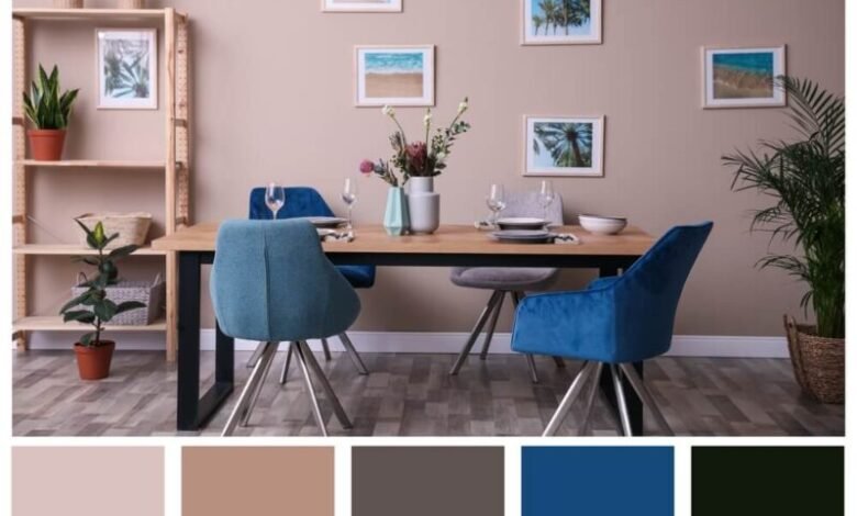إذا كانت الجدران بلون فاتح كالبيج أو الأبيض أو الرمادي الفاتح، فالأثاث الداكن كالخشبي الغامق أو الأزرق الملكي أو الأخضر الزيتوني سيمنح توازنًا رائعًا.